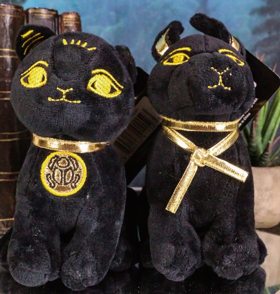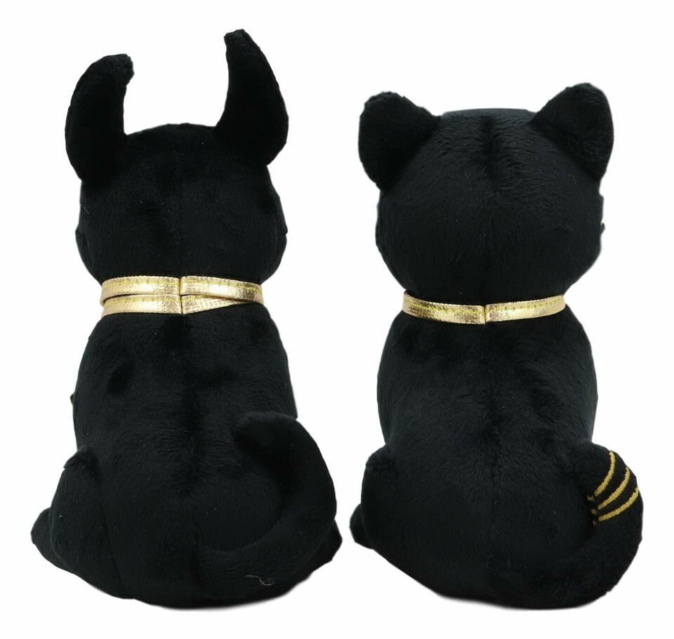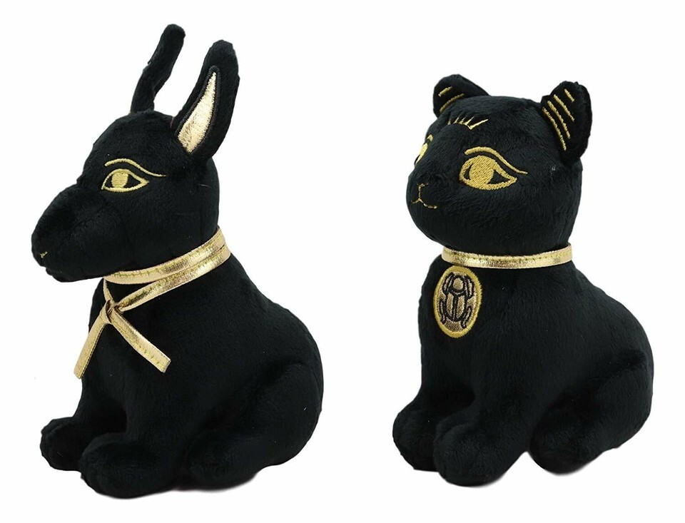 Pack of 2 Black Gold Egyptian Small Bastet Cat and Anubis Dog Plush Toys Dolls