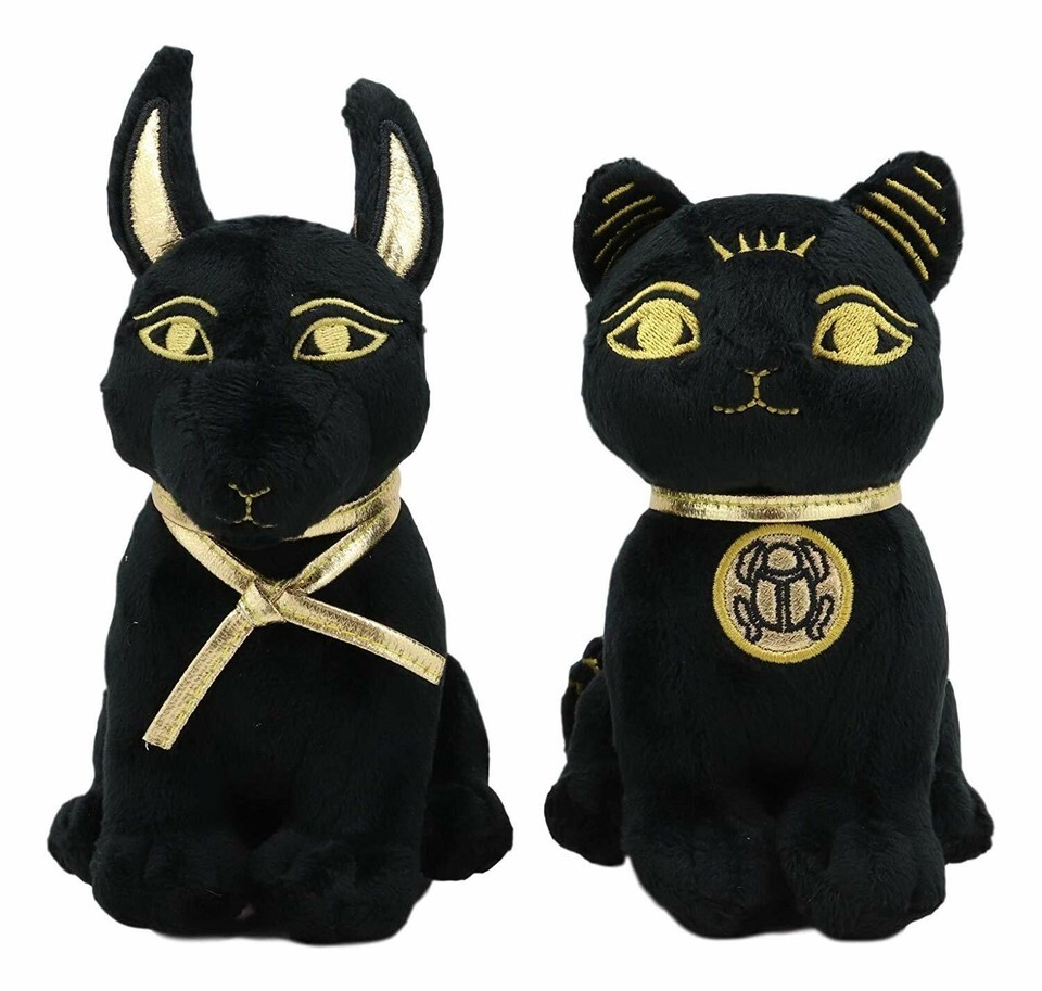? The Egyptian Bastet and Anubis Plush Doll is a super cute plush toy made of polyester.