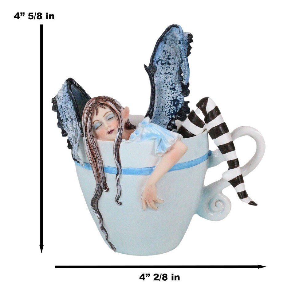 Ebros Amy Brown Teacup Latte Coffee Drunk Whimsical Fairy Figurine 5"H