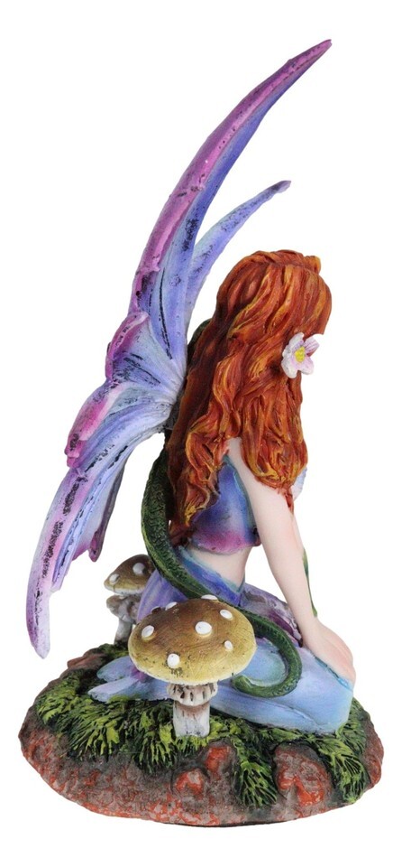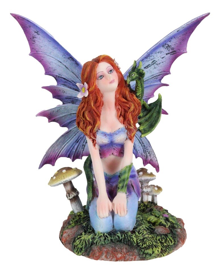 Ebros Fantasy Purple Butterfly Winged Red Hair Fairy with Green Pet Dragon Figurine