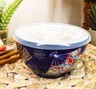 ? These Artistic Meal Storage Bowls are made of high quality food safe ceramic with airtight storage plastic lid. The plastic lids and bowls are dishwasher and microwave safe. Each lid has an open and shut vent feature so that you can microwave the bowl with the lid on and have a vent for steam build up to escape. This will help keep your microwave inner walls clean from food splats. Bowls are designed in Japan and made in a state of the art factory in China.