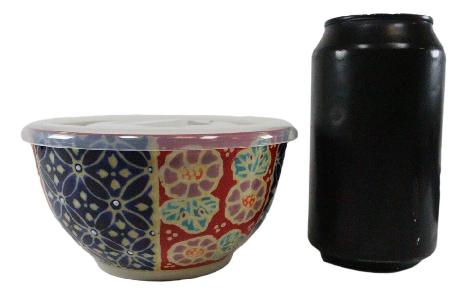? These Artistic Meal Storage Bowls are made of high quality food safe ceramic with airtight storage plastic lid. The plastic lids and bowls are dishwasher and microwave safe. Each lid has an open and shut vent feature so that you can microwave the bowl with the lid on and have a vent for steam build up to escape. This will help keep your microwave inner walls clean from food splats. Bowls are designed in Japan and made in a state of the art factory in China.