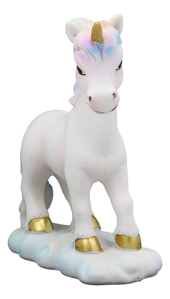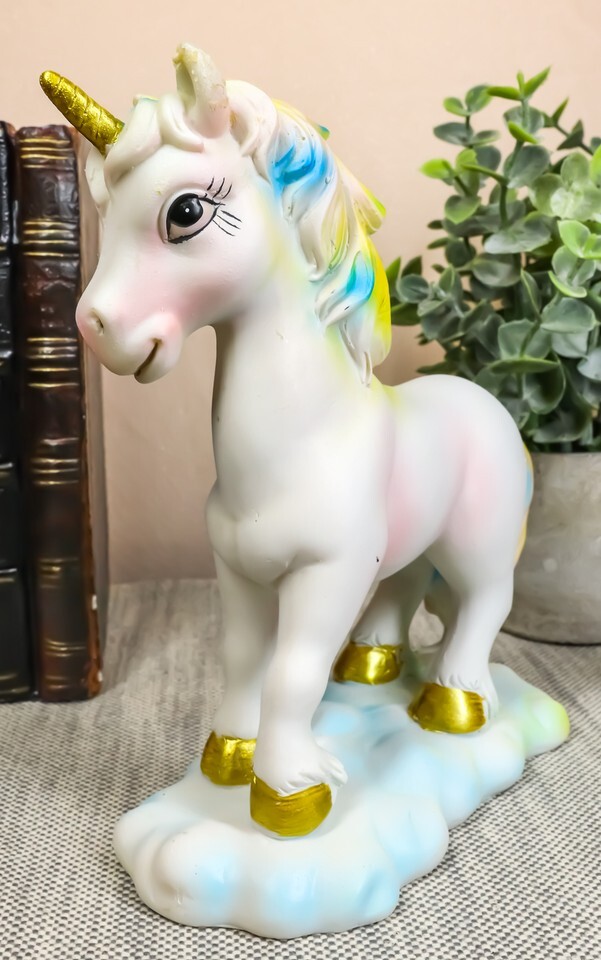 Ebros Pastel Colors Rainbow Mane Gold Horn Unicorn Mare Horse On Clouds Figurine Decor