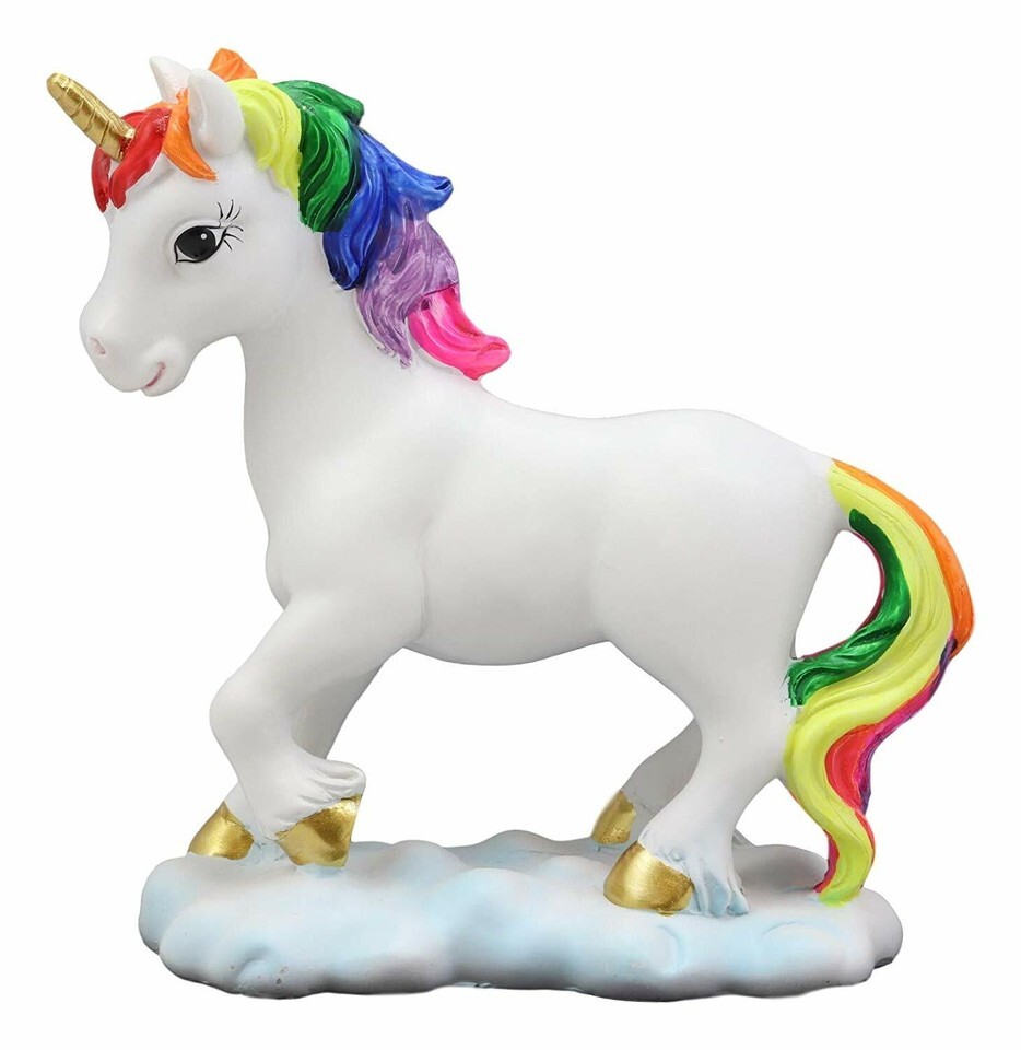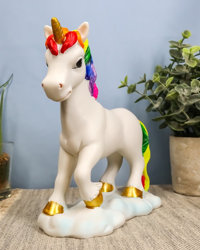 Ebros Beautiful Rainbow Mane Gold Horn Unicorn Mare Horse Walking On Clouds Figurine