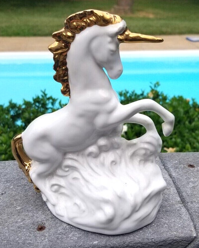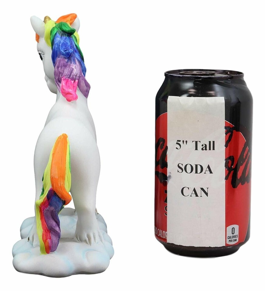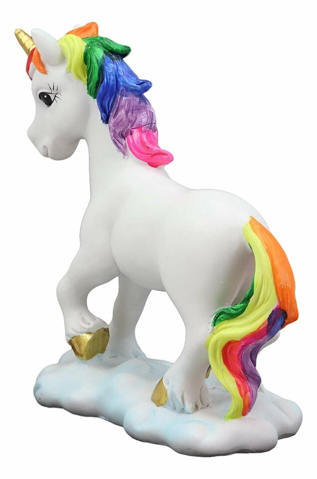 ? This Beautiful Rainbow Mane Unicorn Mare sculpture is made of designer composite resin, hand painted and polished individually.