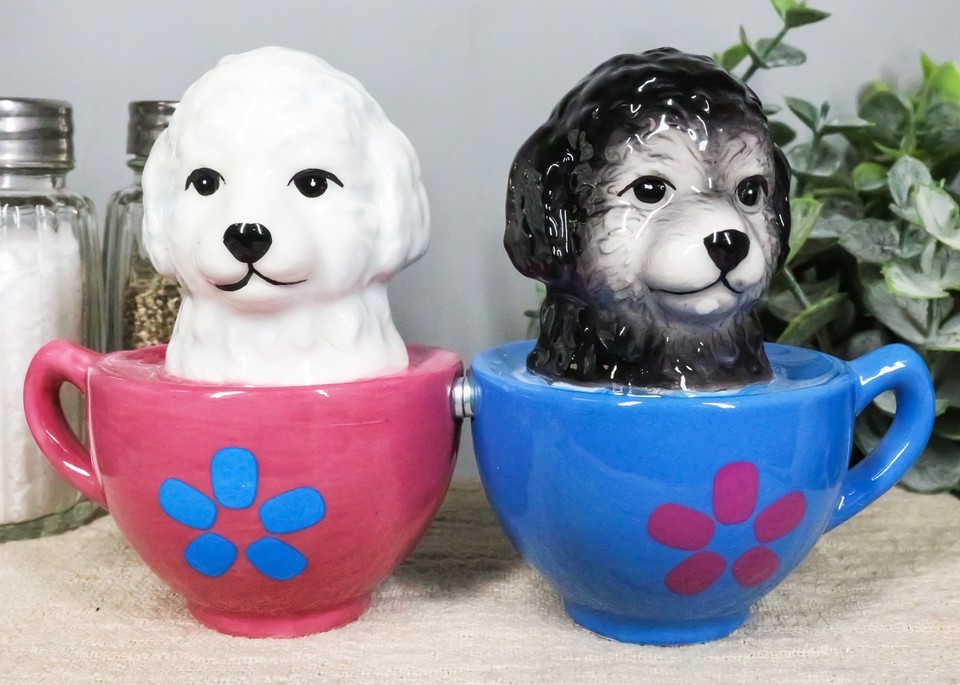 Ebros Aldorable Maltese Puppies in Tea Cup Salt and Pepper Shaker Set Cute Dog Puppy