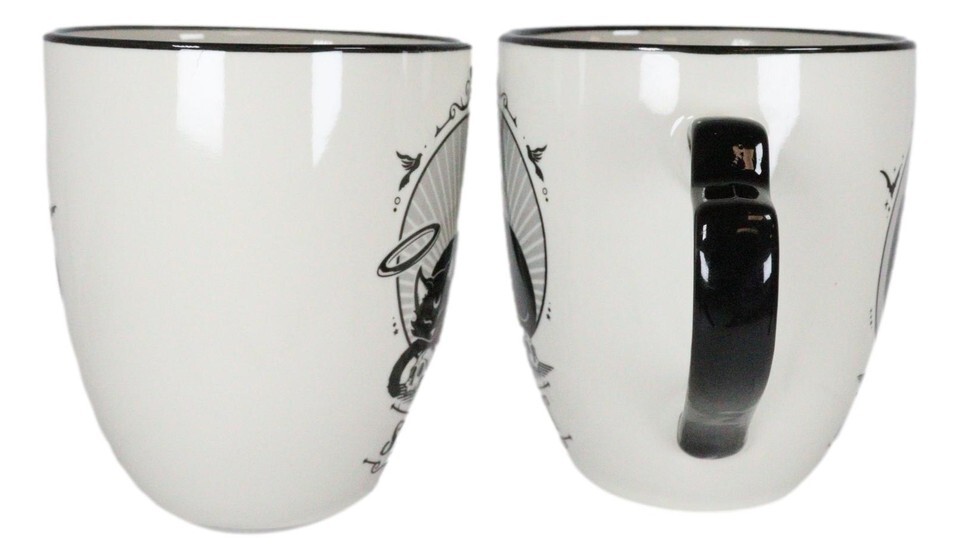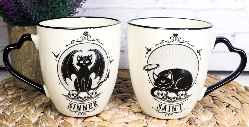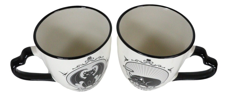 Ebros Set Of 2 Wicca Witching Hour Angel Saint Or Sinner Devil Cats Porcelain Mugs