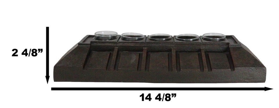 ? This Frank Lloyd Wright 5 Votive Candle Holder Figurine measures 2.5" tall, 14.75" wide and 6.25" Deep approximately.