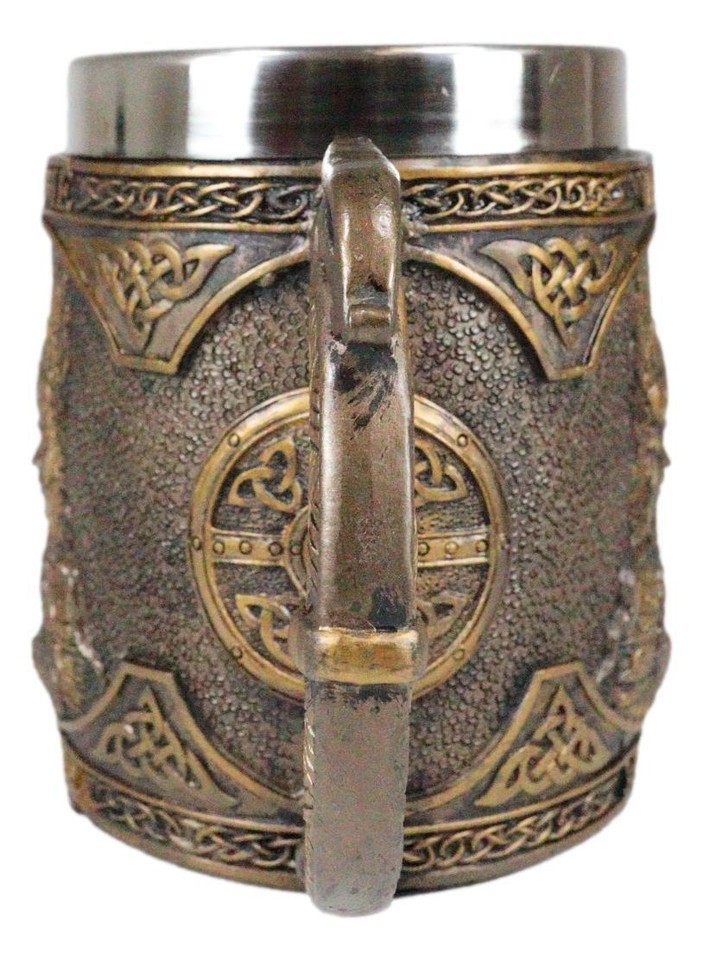 ? This Viking Norse Mythology Coffee Mug is made of fine polyresin and stainless steel, hand painted and polished individually. The mug weighs about 1 pound.