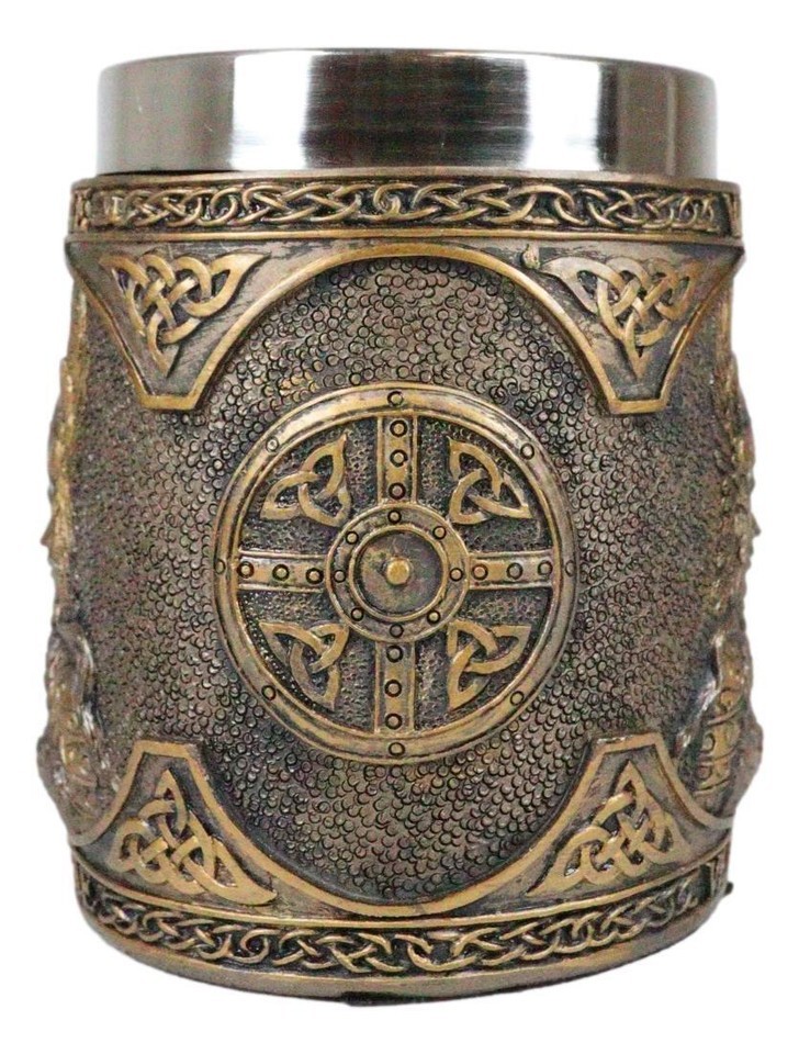 ? Drink in style with this Norse Mythology theme mug with the name of the God or Goddess of choice engraved into the mug. Handwash only. Needing an exotic party decoration? This sculptural mug will do the job fine with asgardian and celtic knotwork throughout the mug. This Norse Mythology Themed Mug is made of resin, hand painted and polished graced with a stainless steel liner for safe drinking. This mug will surely be a centerpiece for any renaissance or medieval themed decor.