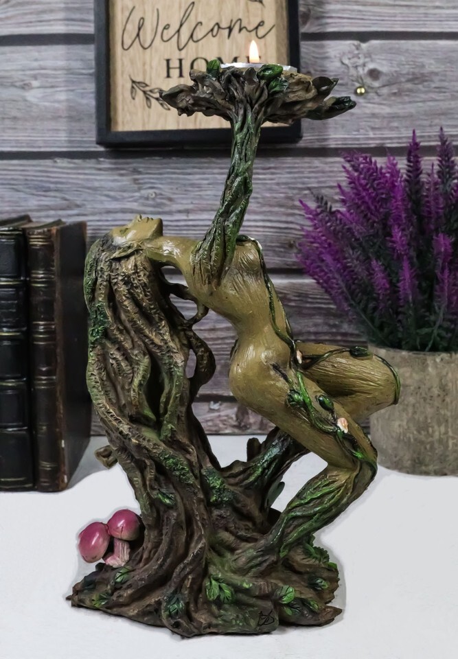 Ebros Forest Celtic Greenman Tree Woman Gaia Dryad Ent Goddess Tea Light Candle Holder
