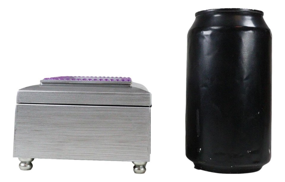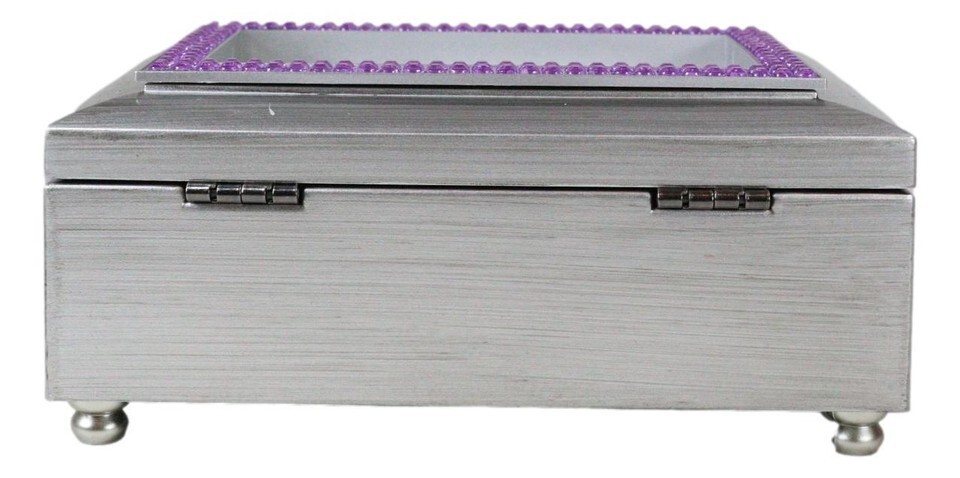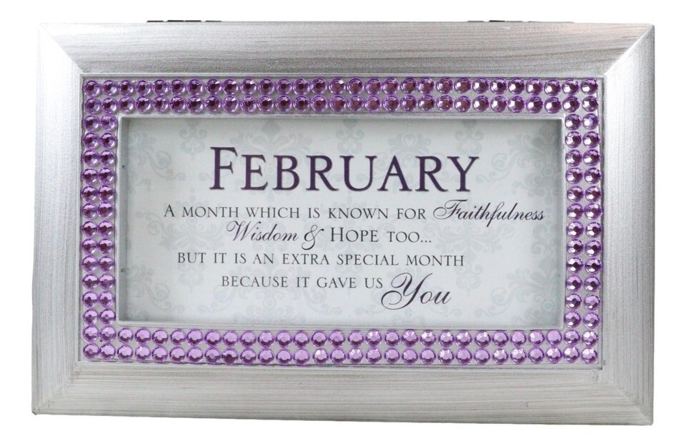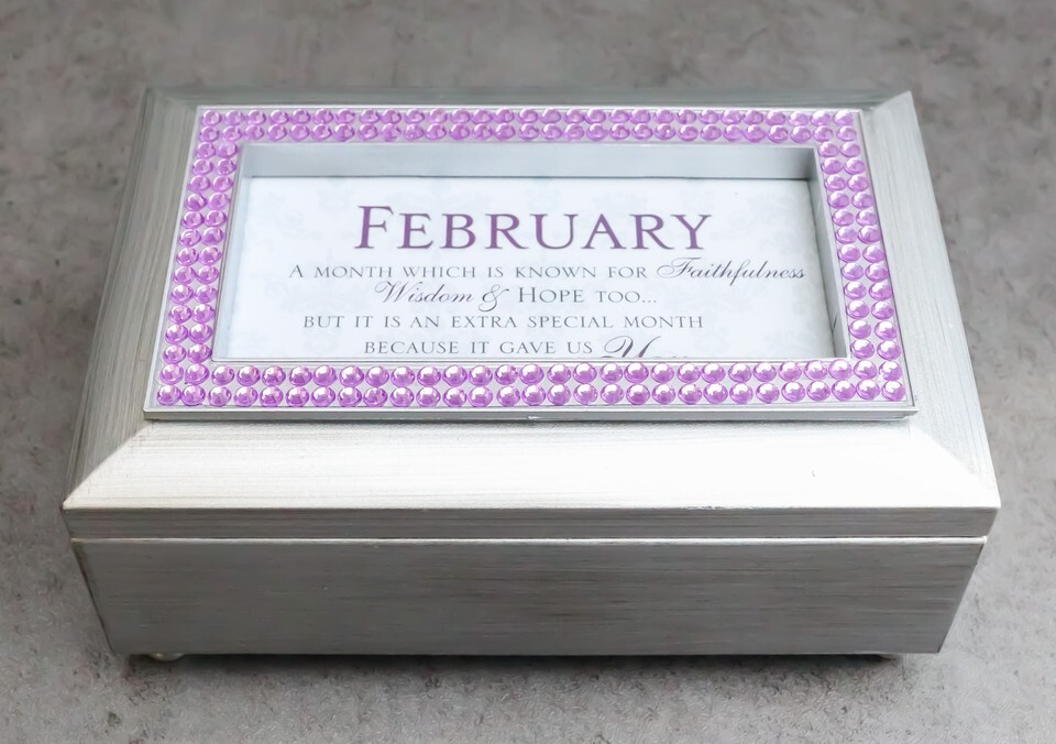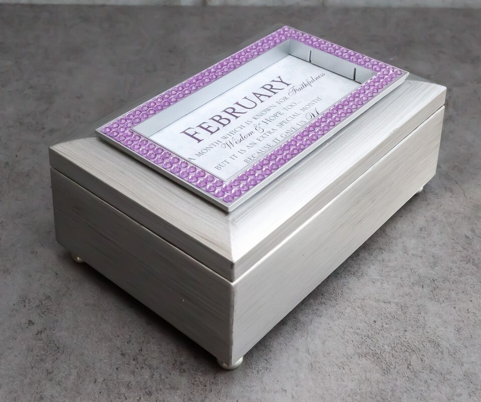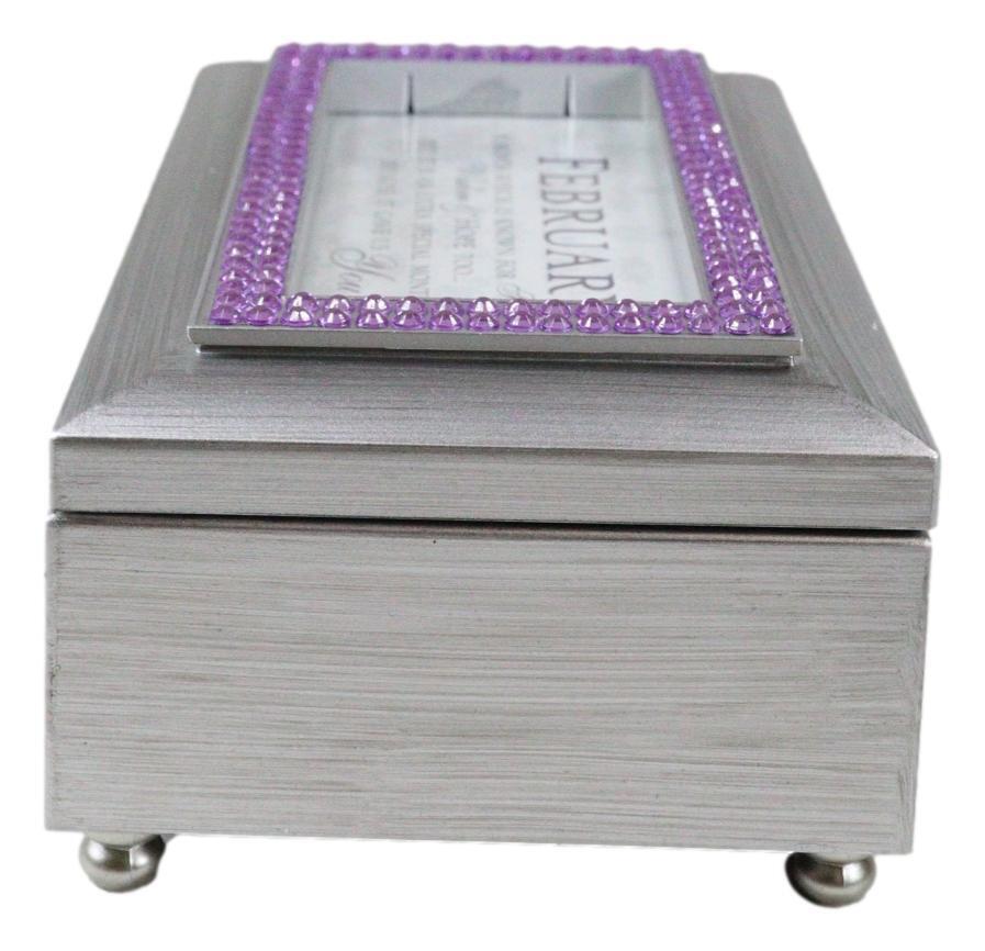 February Birthday Purple Amethyst Birthstones Silver Tone Musical Trinket Box