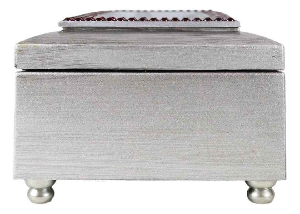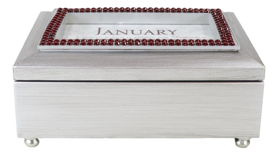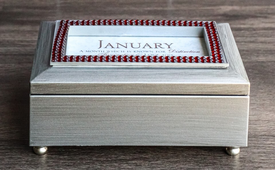 January Birthday Month Red Garnet Birthstones Silver Tone Musical Trinket Box