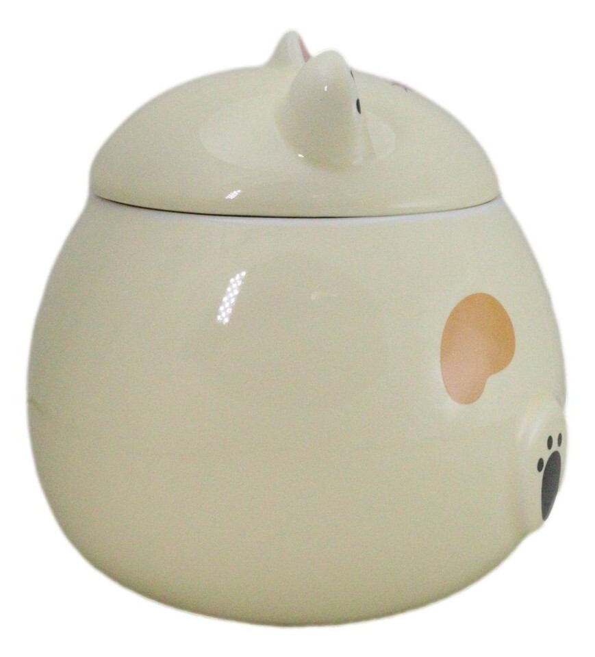? This Whimsical Cat Mug With Lid And Spoon is Mug: 4.5" tall, 5.75" long and 4.5" in diameter. Mug has 15oz capacity. Microwave and Dishwasher safe.