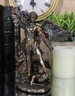? This statue of "St. Michael" depicts the archangel Michael entrenched in battle with Lucifer. It is the final scene of the Battle of Armageddon, with the Saint Trampling Lucifer Satan on the ground with chains around his neck. He wields his sword one last time to unleash a mighty strike at the Plaque and Root of All Evil. This sculpture is a reproduction of the original artwork of Italian Artist Guido Reni from the high-Baroque era.