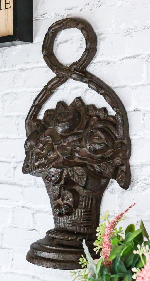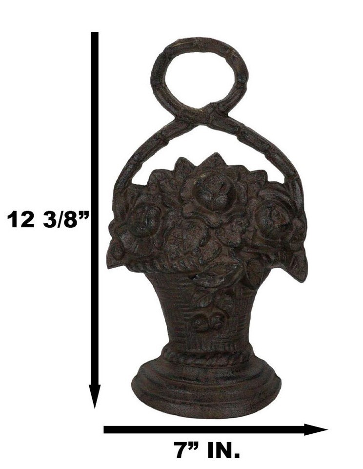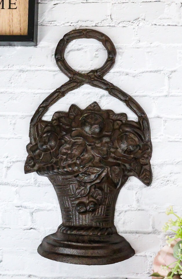Rustic Cast Iron Flowers In Basket Vase Decorative Door Stopper Or Wall Decor