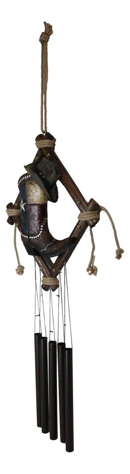 Rustic Western Texas Cowboy Boot And Hat Faux Leather Decorative Wind Chime