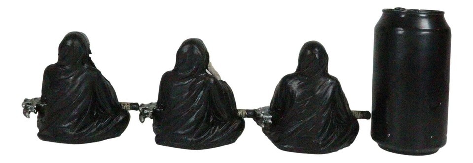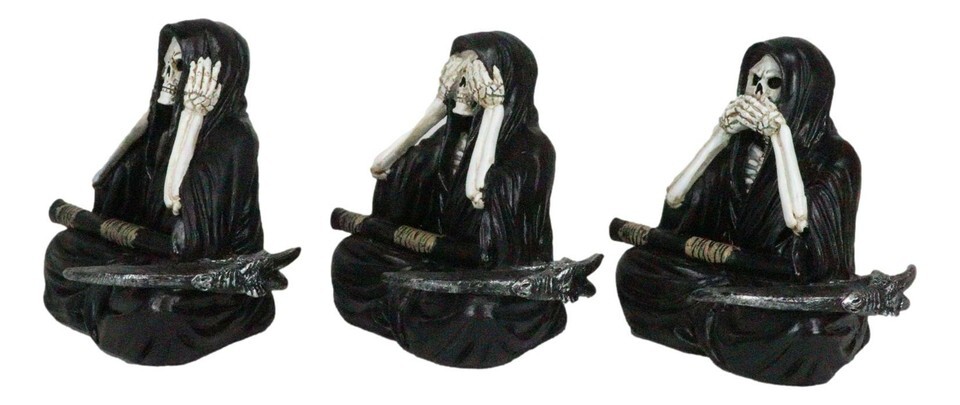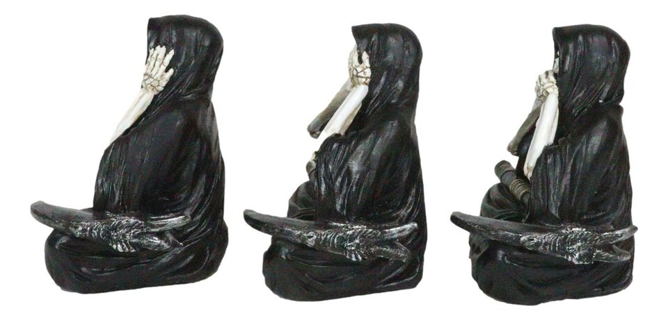 ? These No Evil Grim Reaper Figurines are made of high quality designer resin, individually handpainted and polished. Color tone may vary from pictures.
