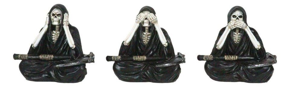 Gothic See Hear Speak No Evil Grim Reaper Skeletons With Scythes Figurines Set