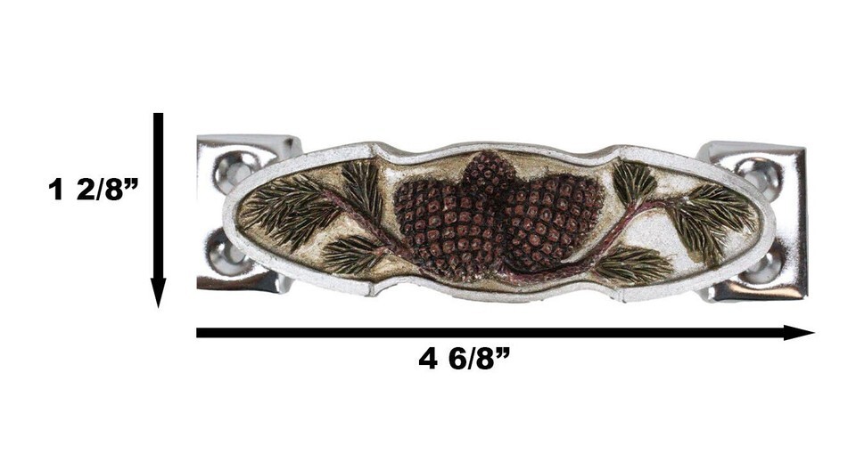 ? Each of these pinecone drawer pulls measures 4.5" Wide. 1" Deep and 1" High. Each piece weighs about 2 ounces. Distance between the two screw-holes 4 1/8".