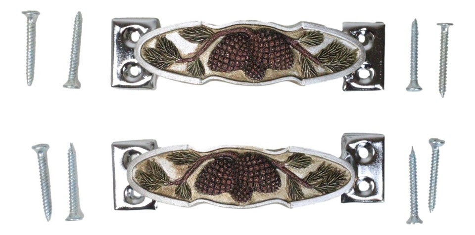 ? Bring woodland detail to your cabinetry/furniture with these figural polyresin pine sprig pulls set on metal hardware. Screws for installation included.