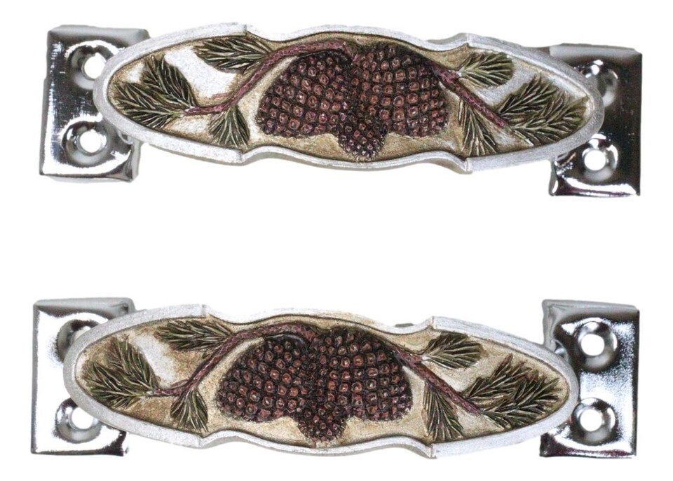 ? Each of these pinecone drawer pulls is made of designer composite resin, hand painted and polished individually. The resin accent is set on aluminum metal hardware for a sturdy solid pull.