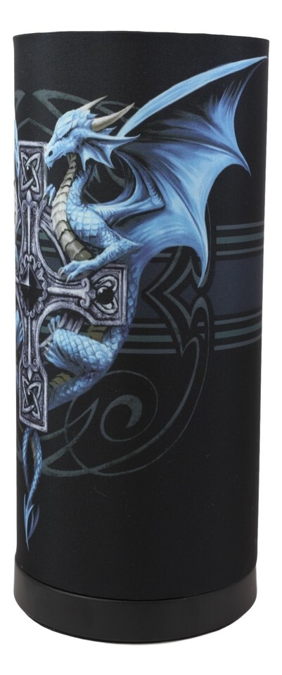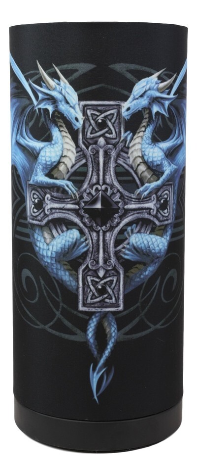 Anne Stokes Gothic Blue Dragon Duo With Celtic Cross Table Column Shade Lamp 11"