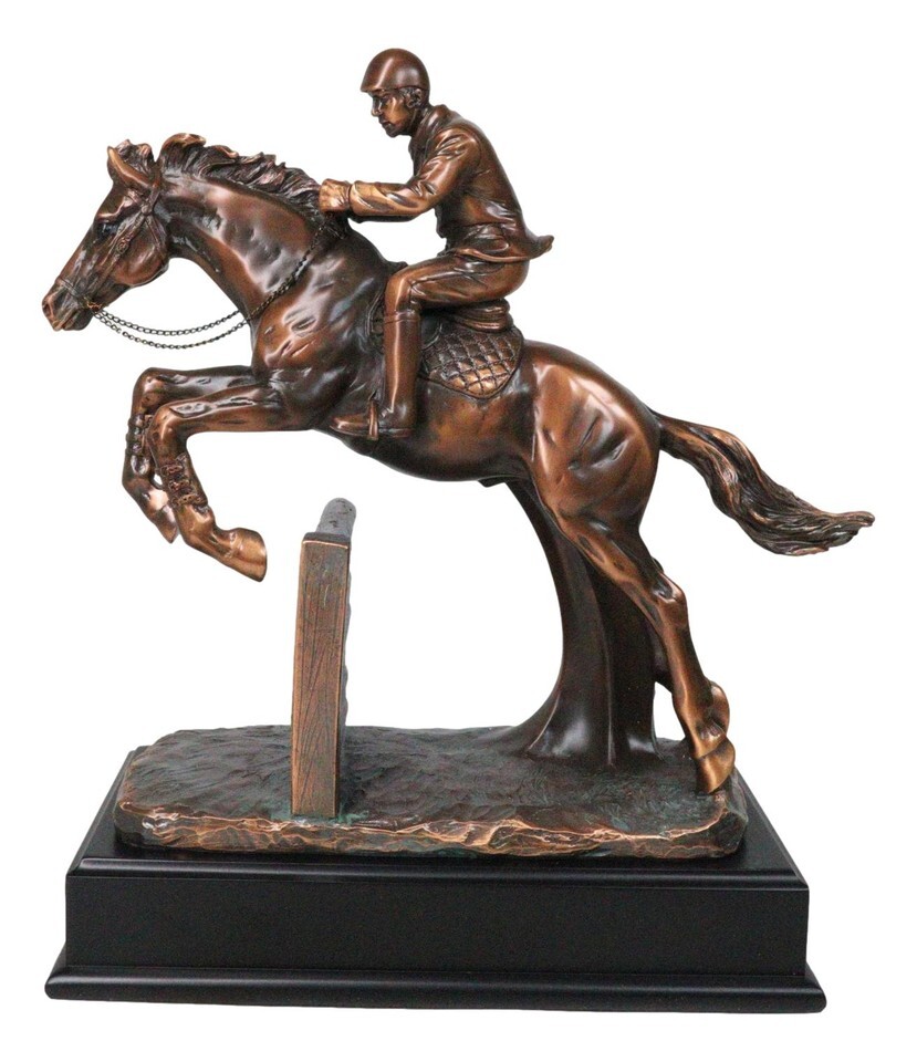? Celebrate the thrill of the racetrack with the Equestrian Horseback Racing Sculpture! This finely crafted piece captures the power and speed of a galloping horse and its determined jockey in stunning detail, set atop a sturdy pedestal base for an elegant display. Perfect for horse racing enthusiasts, equestrian decor lovers, or as a standout gift, this striking sculpture adds a touch of sophistication and sporting spirit to your home or office.