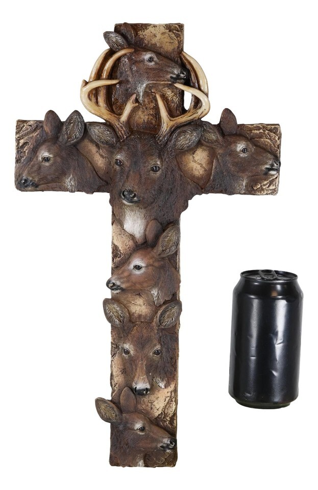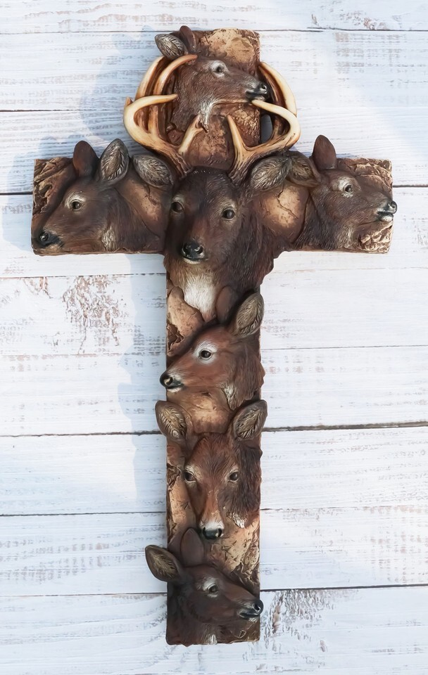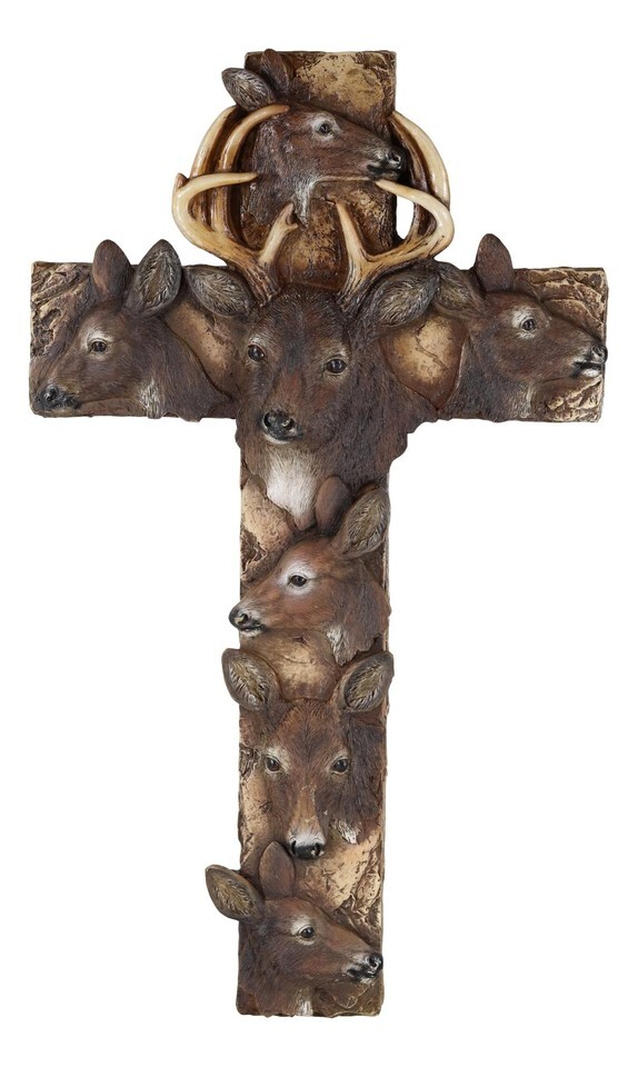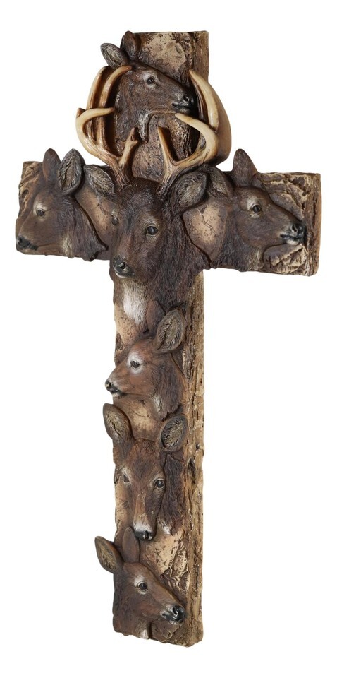 ? This beautiful deer themed wall cross is made of polyresin, hand painted and polished individually.