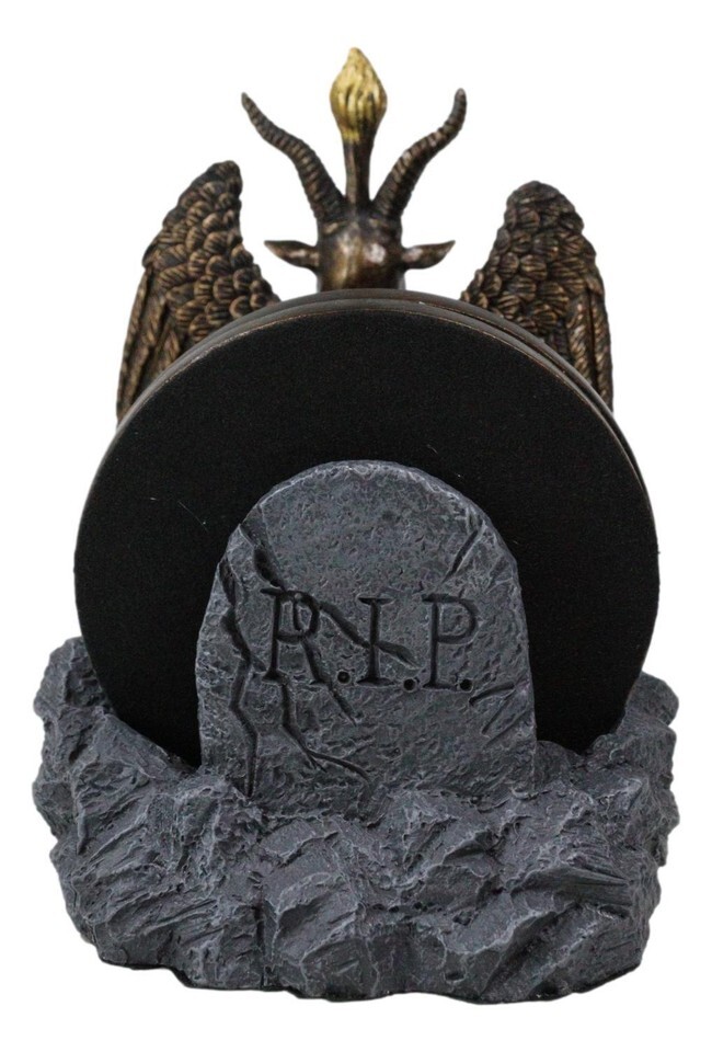 ? This baphomet coaster set sculpture is made of polyresin, hand painted and polished individually.