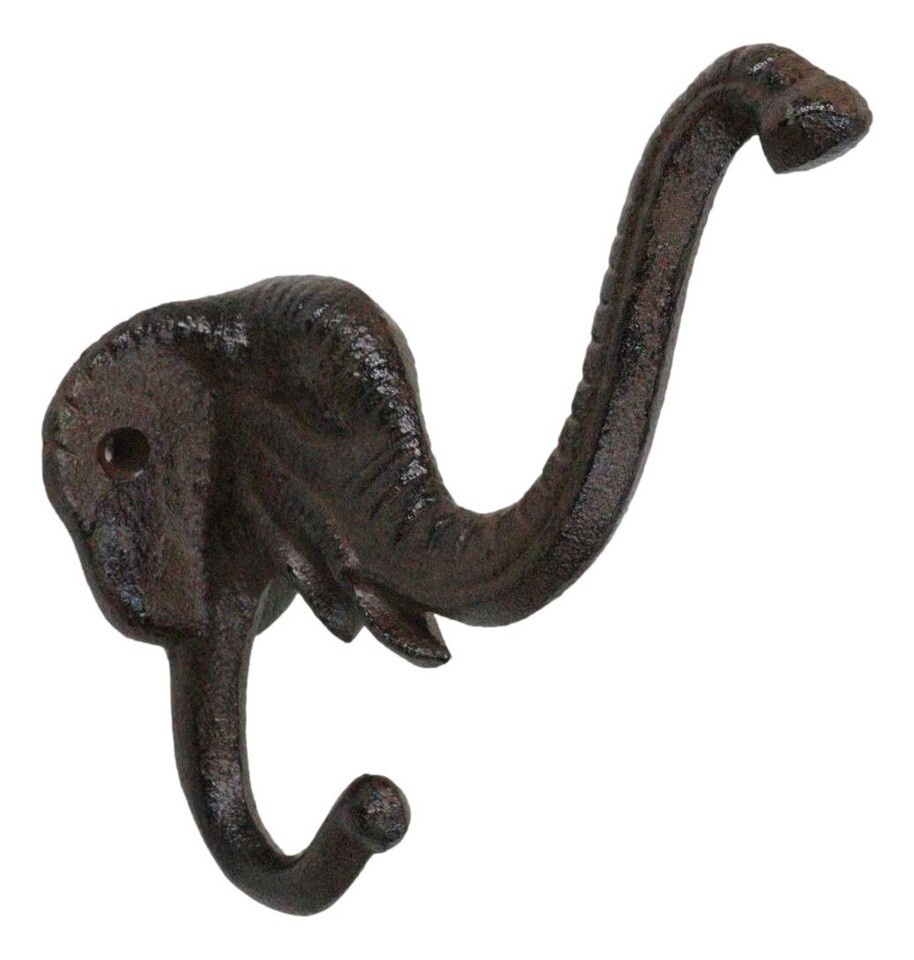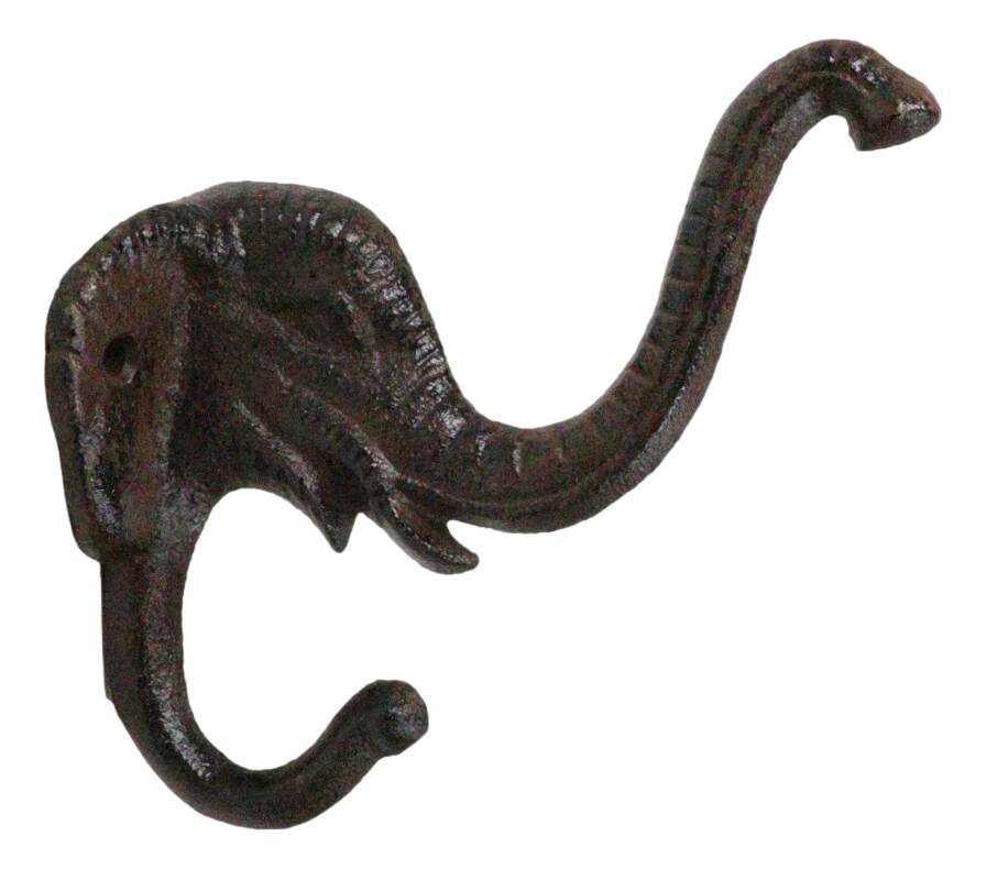 ? Bring a touch of safari charm to your home with this Cast Iron Rustic Elephant Wall Hook. Featuring a majestic elephant with its trunk proudly raised, this durable piece offers two sturdy pegs for hanging coats, hats, keys, or accessories. The bronzed rustic finish adds timeless character, making it both a functional and decorative accent for any entryway, hallway, or rustic-inspired space.