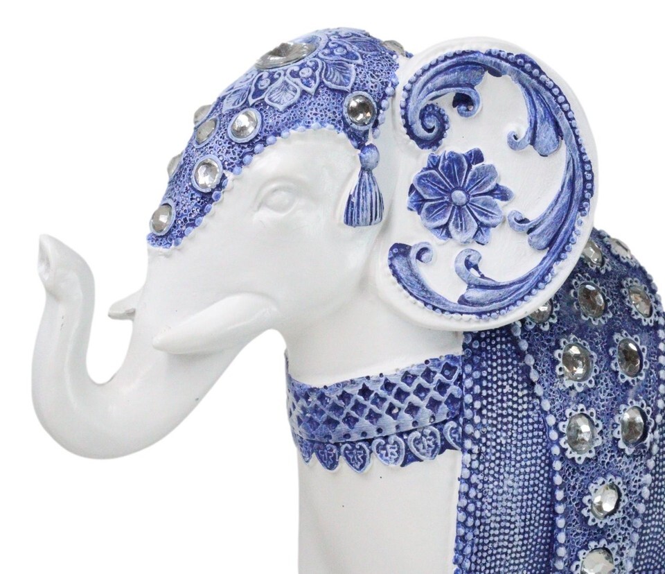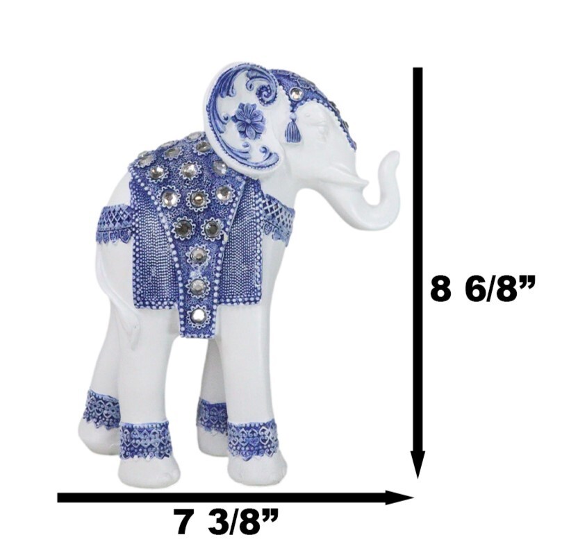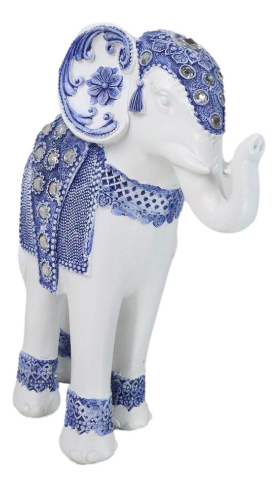 Feng Shui Ming Style Blue And White Ornate Design With Crystals Elephant Statue
