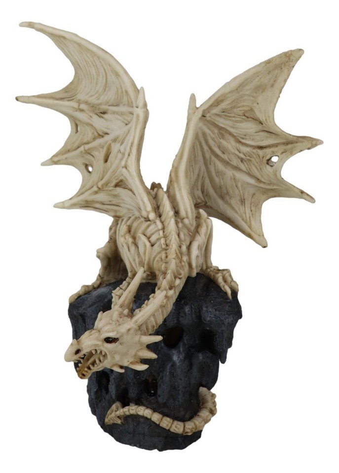? This Skeleton Bone Dragon On Rock With LED Light Figurine is made of designer composite resin, hand painted and polished individually. Color Tone may vary slightly from pictures. Uses LR44 battery (included).