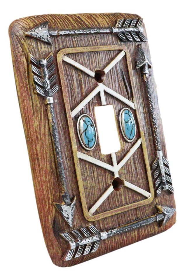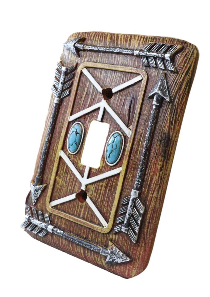 Faux Wood Tribal Indian Turquoise Gem 4 Arrows Single Toggle Switch Plates Set