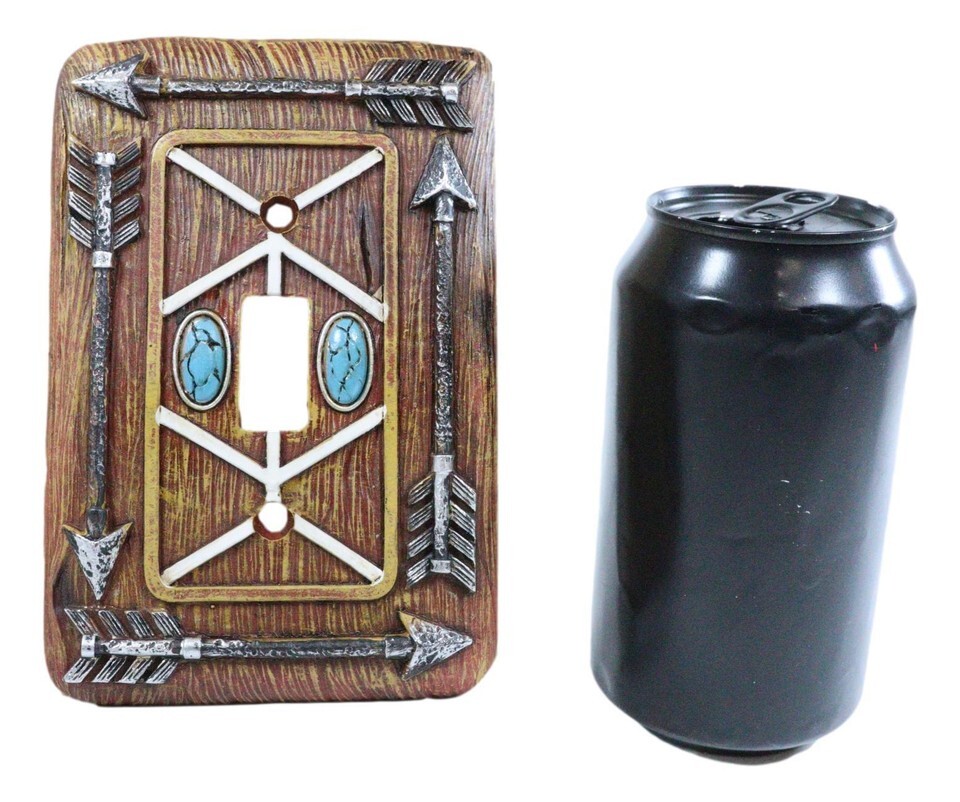 Ebros Faux Wood Tribal Indian Turquoise 4 Arrows Wall Single Toggle Switch Plates Set