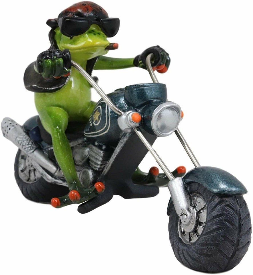 ? This Biker Frog Smoking Cigar Statue is made of designer composite resin, hand painted and polished individually.