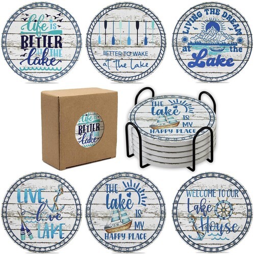 ? Add a touch of wilderness charm to your home with our Black Bears Rowing in Canoe Boat Coaster Holder, complete with four bear paw tree ring round coasters. This delightful set features intricately designed bears enjoying a serene canoe ride, making it a perfect centerpiece for any coffee table or cabin decor. The sturdy coasters protect your surfaces while showcasing beautiful forest-themed artistry.