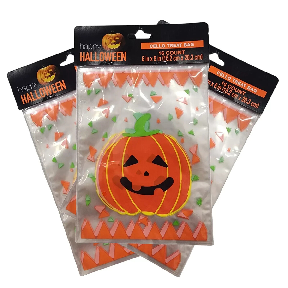 Halloween Clear Cellophane Orange Pumpkin Party Treat Candy Bags 6"x8" Lot of 11