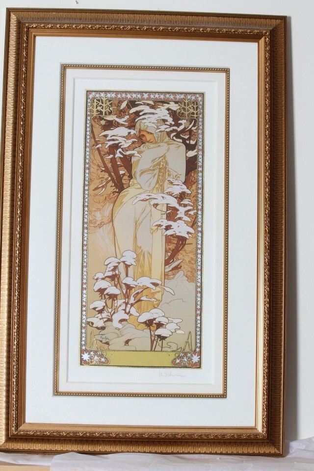 The item you are bidding on is exclusively licensed Mucha Foundation images. There was a limited number of estate-supervised, approved, and hand-signed editions. Mucha fine art prints have been created using state-of-the-art techniques and beautiful gold leafing. Each print is signed and numbered by John Mucha and bears the Mucha estate seal.