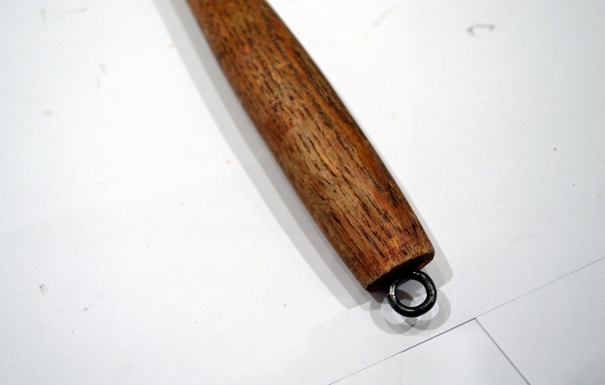 The handle is oak, hammer head is cast metal and the two blades are stainless steel that’s been polished.