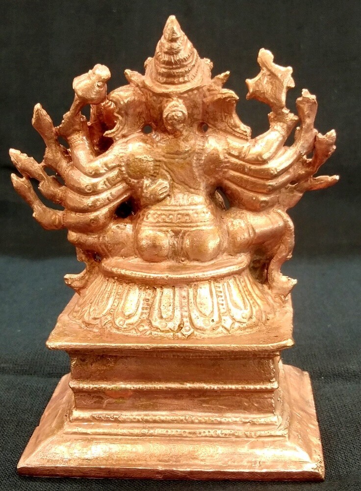 Majestic idol of Maha Ganpati 10 hands in Pure Solid Copper |