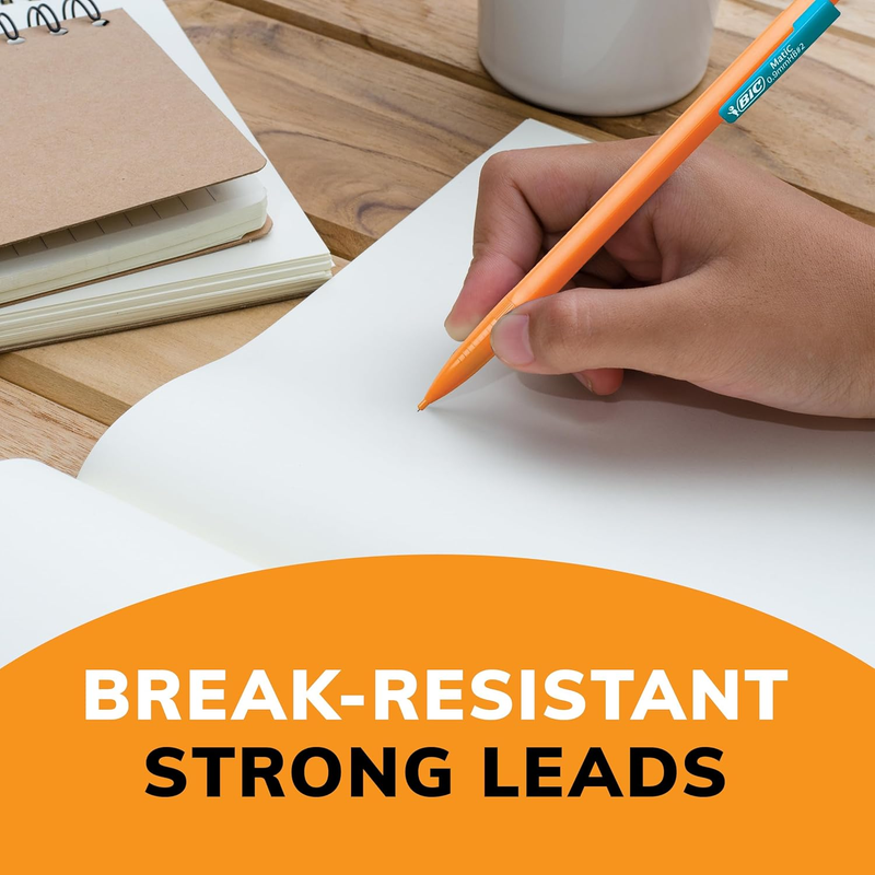Keep your writing precise and tidy by using BIC Xtra-Strong Number 2 Mechanical Pencils With Erasers. The 0.9mm break-resistant lead is thick and durable, making this pack of mechanical pencils a dependable choice for everyday writing activities. Each thick lead mechanical pencil in this set offers smooth, clear writing, and best of all ? no sharpening is required. Plus, the lead advances quickly with a simple click of the eraser, so you?re always ready to keep writing. For neat penmanship, these number two pencils ensure smudge-free writing that erases cleanly. A contrasting clip allows for easy attachment to notebooks, pockets and more, and the vibrantly colorful barrels showcase an on-trend design that livens up writing sessions to complete the fashionable look. Exceptional lead resilience and longevity make these refillable mechanical pencils a great option when taking standardized tests and restocking your school or office supplies. Choose the No. 1 selling mechanical pencil* by making the smart choice with BIC Xtra-Strong Mechanical Pencils. *Source: The NPD Group/ U.S. Retail Tracking Service/ Actual Unit Product Line Sales (Retail And Commercial Combined)/ Annual 2020).