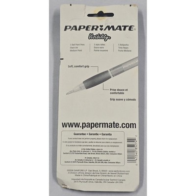 Paper Mate Click Pens 5 Pack Medium Point Black Soft Grip 1.0mm Visibility 2006