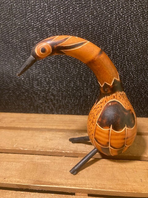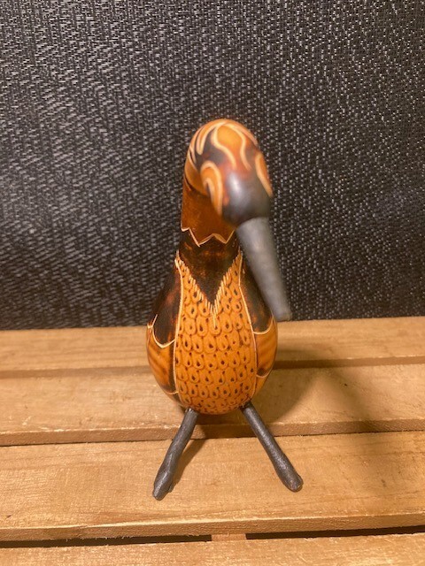 Hand Carved Painted Folk Art Peruvian Dried Gourd Bird Collectible