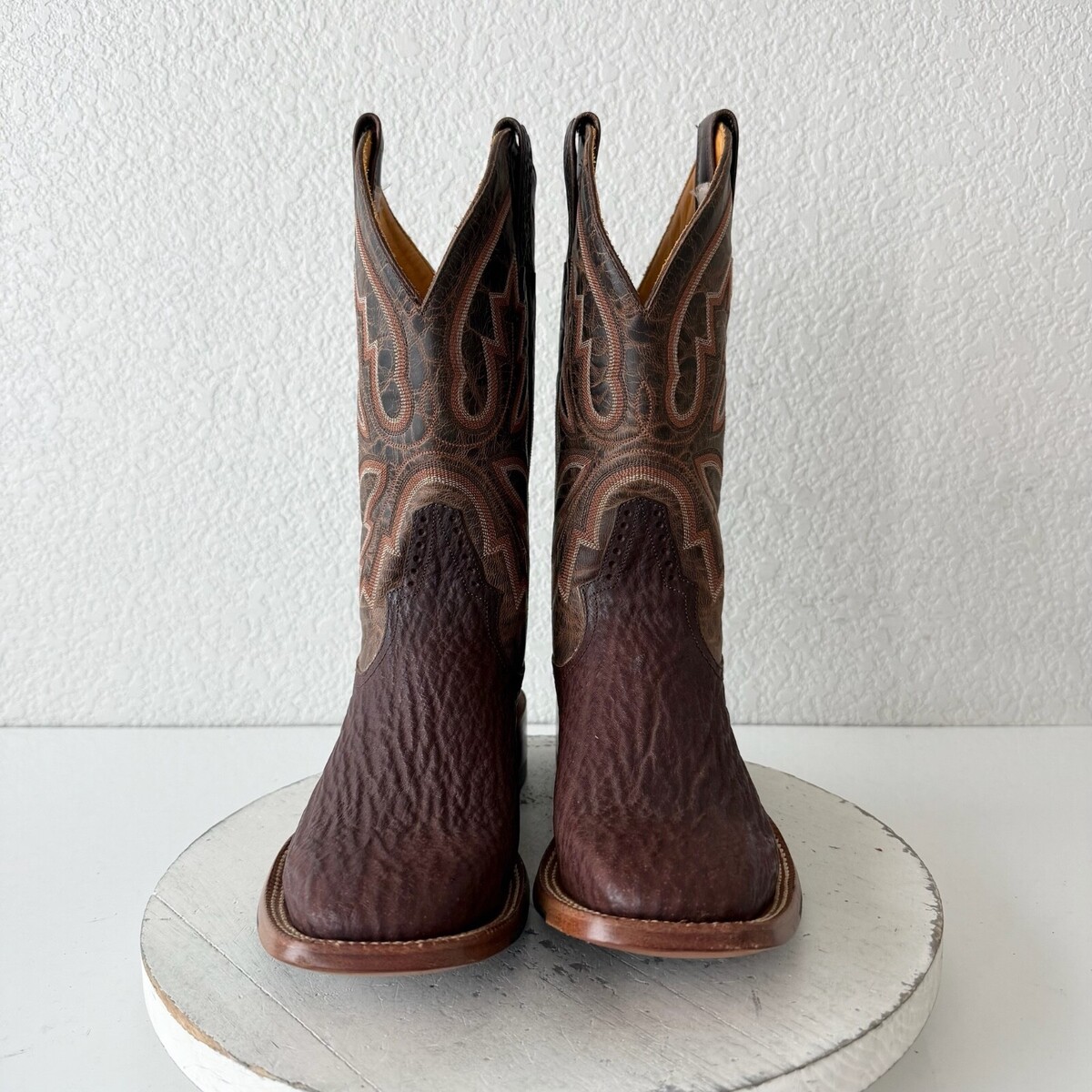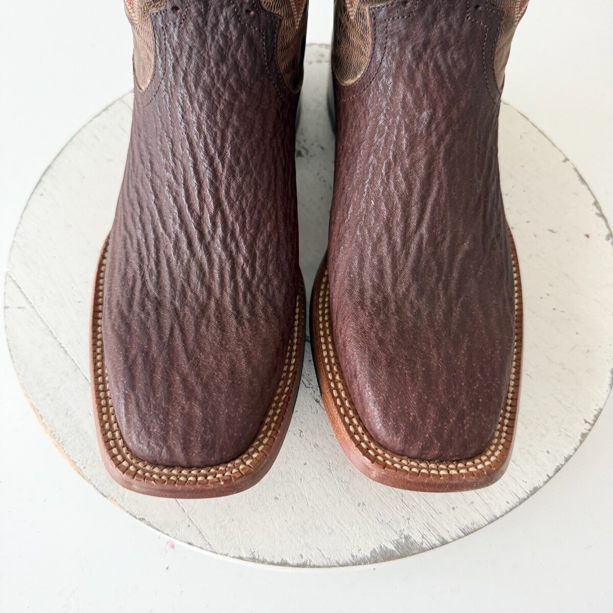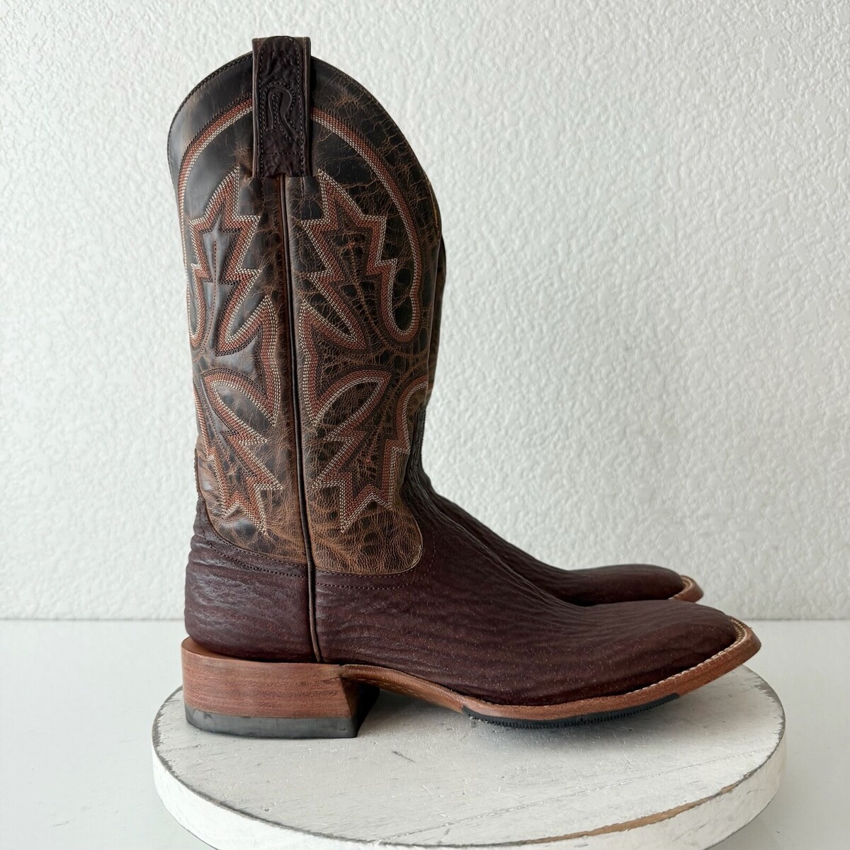 Rod Patrick Mens Square Toe Western Cowboy Boots Brown Sharkskin Leather 8B NEW