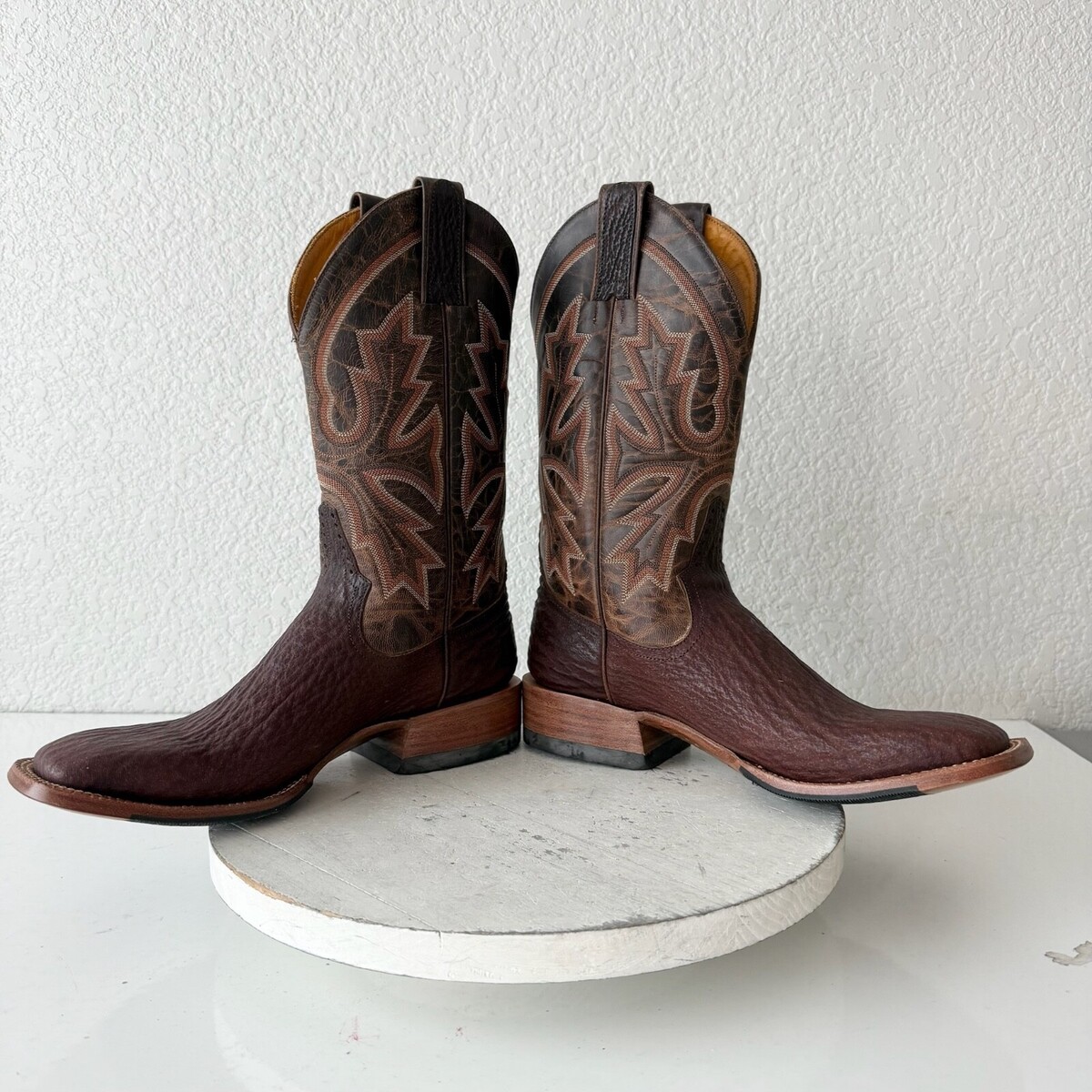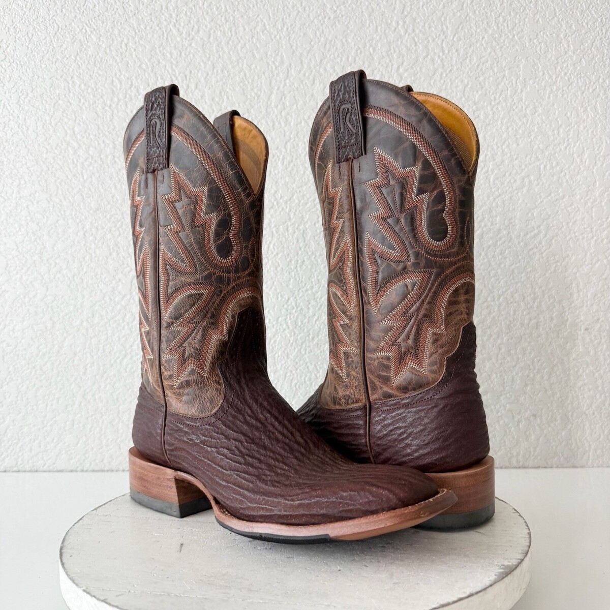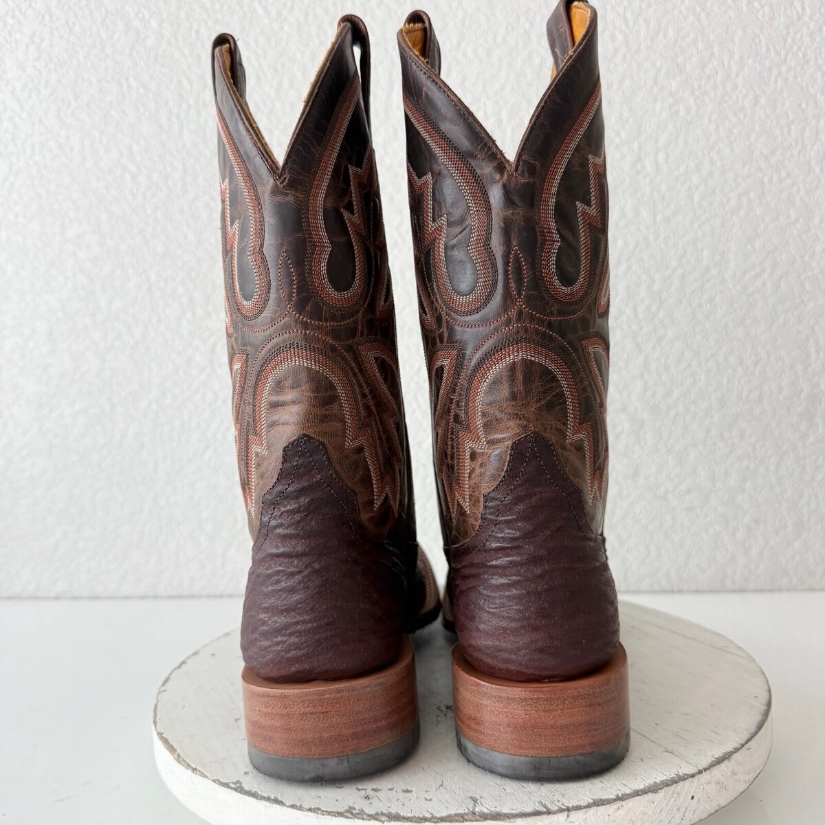 Rod Patrick Mens Square Toe Western Cowboy Boots Brown Sharkskin Leather 8B NEW