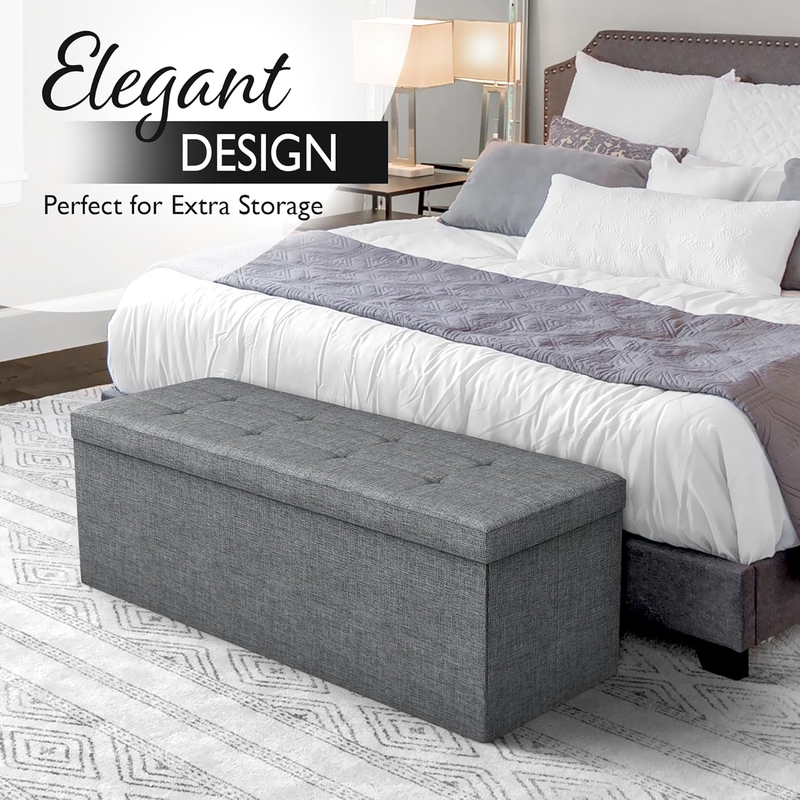43" Folding Storage Ottoman Bench for Living Room, Bedroom, TV Entertainment - Bedroom Bench with Hidden Storage, Foot Rest Stool - 660 Capacity Holds up to 5.6 Cubic Feet of Storage - DARK GREY