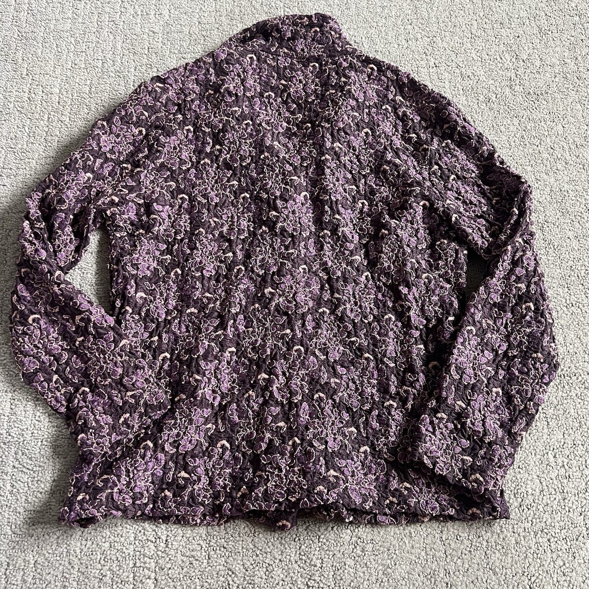 Vintage Bisou Bisou Women’s Blouse Sz S Floral Crinkly Longsleeve Y2K Boho Chic