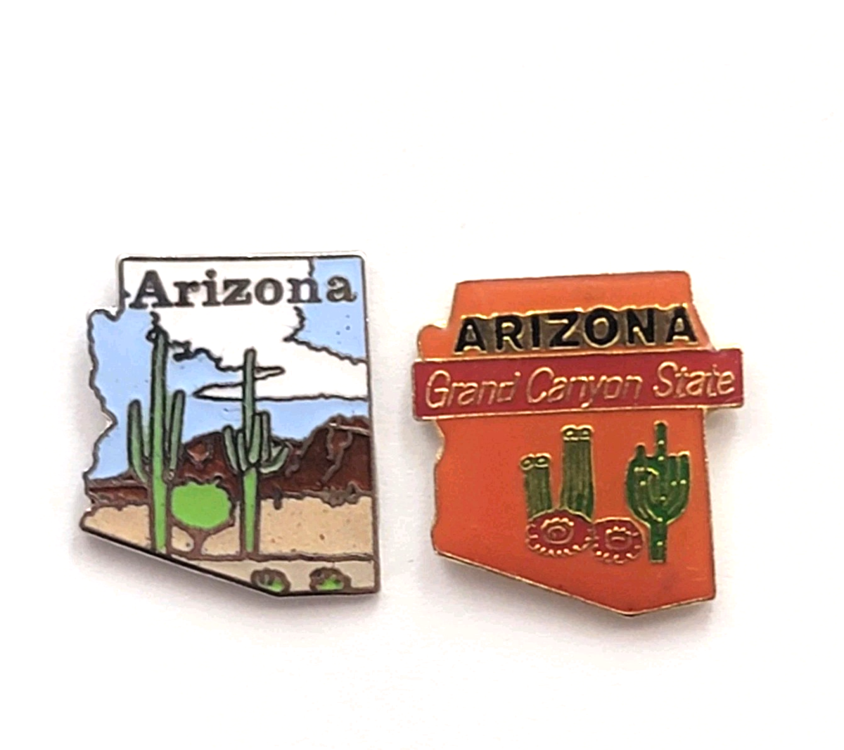 Arizona Souvenir Pin Lot 2 AZ State Map Desert Cactus Grand Canyon State Travel
