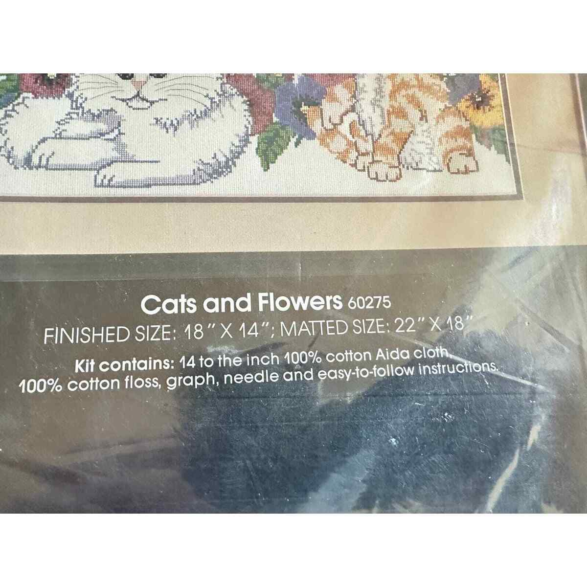2 VTG NOS Golden Bee Counted Cross Stitch Cats & Flowers /Cat Saying Picture